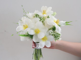 D72 화이트튤립+그린 소재 부케